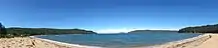 Patonga is a small and quiet bayside community occupying a one kilometre long sandy spit projecting from the rocky and elevated headland of the Brisbane Water National Park to the north through to the spit at the mouth of the Patonga Creek which feeds into the Hawkesbury River at Broken Bay. Patonga has both a beach frontage onto Brisk Bay to the east and a sandy foreshore on the creek to the west.