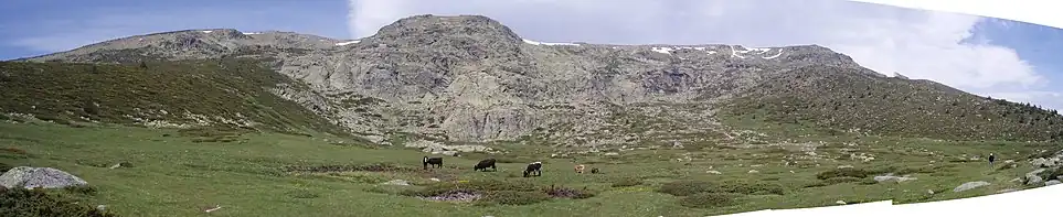 Peñalara glacial cirque (Spanish: Circo glaciar de Peñalara. Also known as Hoya de Peñalara and Hoya del Toril) is a cirque glacier located within the Peñalara Natural Park, in the center of the Sierra de Guadarrama (mountain range belonging to the Central System). It is the most extensive of the mountain range with its 140 hectares approximately. Administratively it is within the municipality of Rascafría, a Spanish municipality located in the northwest of the Community of Madrid.