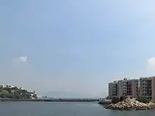 Tsing Lung Road (青龍路) connecting Pearl Island (right) to the mainland (left).