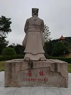 Pei Xiu (Chinese: 裴休; 791–864[1]), courtesy name Gongmei (公美), formally the Viscount of Hedong (河東子), was a Chinese politician, literary figure, and Buddhist intellectual during the Tang dynasty, serving as a chancellor during the reign of Emperor Xuānzong. A prominent literatus and member of a prestigious aristocratic clan, Pei was considered a capable administrator and was credited with the skillful management of the Tang government's salt and iron monopoly. Pei was also a dedicated practitioner and patron of Chan Buddhism, pursuits which drew critique from later Confucian historians.