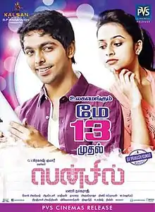 Pencil is a 2016 Indian Tamil-language mystery thriller film written and directed by debutant Mani Nagaraj and produced by S. P. Ragavesh.[1] The film is based on South Korean film 4th Period Mystery. The film stars G. V. Prakash Kumar and Sri Divya, with the former also composing the film's music. The film was released on 13 May 2016.[2]