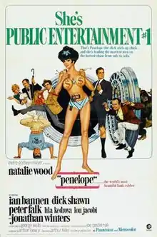 Penelope is a 1966 American comedy caper film directed by Arthur Hiller, and starring Natalie Wood, Ian Bannen, Peter Falk, Jonathan Winters, and Dick Shawn. George Wells' screenplay was based on the 1965 novel of the same title, written by Howard Melvin Fast under the pseudonym E.V. Cunningham.