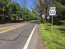 Pennsylvania Route 532 (PA 532) is a 19.1-mile-long (30.7 km) state route located in the Philadelphia, Pennsylvania area. The route runs from an intersection with U.S. Route 1 (US 1) in Northeast Philadelphia north to an intersection with PA 32 in Washington Crossing near the Washington Crossing Bridge over the Delaware River. The route passes through developed areas in Northeast Philadelphia before heading north through suburban Bucks County, serving Feasterville, Holland, and Newtown before coming to Washington Crossing.