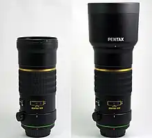 The smc PENTAX-DA* 1:4 300mm ED [IF] SDM is a supertele prime lens for Pentax K-mount. It uses Pentax' silent SDM motor for autofocus on compatible cameras (K10D[1] and K200D upwards), and has Quick Shift Focus to allow manual adjustments in autofocus mode.