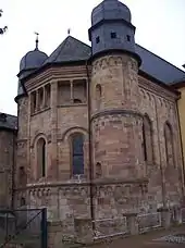 The former Pfaffen-Schwabenheim Augustinian Canonical Foundation (Augustiner-Chorherrenstift Pfaffen-Schwabenheim) is the biggest Baroque monastery complex that has been preserved unaltered in Rhineland-Palatinate. The former provostry church (then known as the monastery or abbey church, now as the Catholic Parish Church of the Assumption of Mary, or Pfarrkirche Mariä Himmelfahrt in German) that was built into the Baroque complex is one of Rhineland-Palatinate's noteworthiest Late Romanesque churches, and it stands under the protection of the Hague Convention for the Protection of Cultural Property in the Event of Armed Conflict. Since August 2012 the church has also been a promotional project of the Deutsche Stiftung Denkmalschutz (German Foundation for Monument Protection). The abbey church itself unites Lower-Rhine and Upper-Rhine Romanesque with elements of the Gothic that came from France into a unique, harmonious ambiance. The church is made up of two parts that date from different times: the Late Romanesque quire and the Late Baroque nave. The Late Romanesque tapering quire is enclosed by an apse flanked by round towers and was built sometime in the years from 1230 to 1248. The transept, completed in 1260, has now vanished. In 1308 came the final consecration, whose 700th anniversary in 2008 was celebrated with a Pontifical High Mass with Karl Cardinal Lehmann. The Late Baroque aisleless nave was built onto the Late Romanesque quire in 1766, and in 1848 it was given a ridge turret. The convent buildings that were built between 1723 and 1764 form a three-winged Baroque complex with mansard roofs and elaborate stucco ceilings of the Mainz school of strapwork. The highlight among the stucco ceilings is the painted one in the former refectory measuring more than 90 m², which bears inscribed witness to the sponsor of these works, Charles III Philip, Elector Palatine. The last remnants of the ringwall that once girded the monastery were removed in 2003 when a new building zone was laid out.