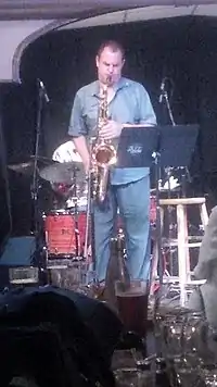 Phil Dwyer CM is a Canadian jazz saxophonist, pianist, composer, producer and educator. In 2017 he graduated from the University of New Brunswick (UNB) Faculty of Law in Fredericton, New Brunswick and was called to the bar of British Columbia in 2018. Dwyer is Member of the Order of Canada, having been invested in 2013 "For his contributions to jazz as a performer, composer and producer, and for increasing access to music education in his community."[2] Dwyer has been nominated for Juno Awards six times[3] and won Best Mainstream Jazz Album in 1994 with Dave Young for Fables and Dreams and Contemporary Jazz Album of the Year in 2012 for the recording Changing Seasons. Dwyer has also appeared on Juno Award winning recordings with Hugh Fraser (1988), Joe Sealy (1997), Natalie MacMaster (2000), Guido Basso (2004), Don Thompson (2006), Molly Johnson (2009), Terry Clarke (2010), and Diana Panton (2015). He is an alumnus and Honorary Fellow of The Royal Conservatory of Music.[4]