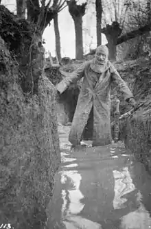 ![]() Colonel Philip R Robertson, commanding officer of the 1st Battalion, Cameronians (Scottish Rifles) returning from a tour of his unit's positions in waterlogged trenches at Bois Grenier in January 1915. | |
