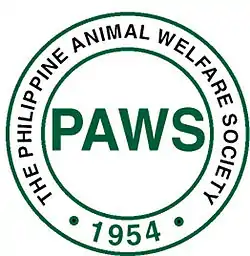 The Philippine Animal Welfare Society (PAWS) is a volunteer-based, non-government organization whose goal is to prevent animal cruelty through education, animal sheltering and advocacy, based in Quezon City, Philippines. It was founded in 1954 by Muriel Jay. PAWS believes that the creation of a more peaceful society starts with the widening of mankind's circle of compassion which includes animals, thereby envisions a nation that respects animals, practices responsible pet ownership and protects wildlife. The volunteer-based organization rehabilitates these animals in the hope of finding them new homes and a second chance at a good life. PAWS does not take in pets of other people, but only victims of cruelty or neglect where the animal offenders are charged with violation of the Animal Welfare Act in court.