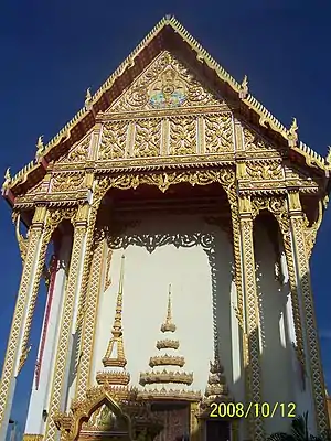 [3] In 1811, the latter Thao Jammutra moved city to Ban Don Pan Chat, Muang Maha Sarakham (Ban Nonmuang, Paeng Subdistrict, Kosum Pisai District, Maha Sarakham in present), and Ban Bueng Bon has been an old town since then. Its present address is 593 Klangmueng Road, Naimueng Subdistrict, Mueng Khon Kaen District, Khon Kaen Province. His majesty the king granted its first consecrated boundaries to Phraya Nakhon Sri Borirak (Au) in 1899, and eventually on August, 24th 1984. Its boundary separated from secular area is 40x80 sq. m. Overall temple area is 41.266 km2. which titled by the land certificate 713, no.28, survey page 794, book no.8, page 13. Its temple area is surrounded with communities. Kaen Nakhon Marsh is located at its east. In 1981, this temple was awarded the role-model of a well-developed temple, and in 1983 for the best developed temple. Furthermore, in 1984, it was officially approved as a royal temple.
