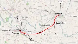 | Piacenza–Cremona railway | ||||||||||||||||||||||||||||||||||||||||||||||||||||||||||||||||||||||||||||||||||||||||||||||||||||||||||||||||||||||||||||||||||||||||||||||||||||||||||||