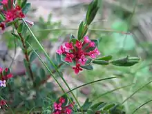 Pimelea alpina, the alpine rice-flower,[2] is a species of flowering plant in the family Thymelaeaceae and is endemic to south-eastern continental Australia. It is an erect, prostrate or spreading shrub or undershrub with narrowly elliptic leaves crowded at the ends of branches and heads of pinkish red or white flowers.