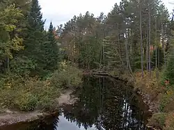 The Pine River begins at the outlet of Pine River Pond in Wakefield, New Hampshire. The river almost immediately enters the town of Ossipee and heads northwest through a sandy, pine-forested valley. The Pine River Esker, now mostly excavated by sand and gravel operations, follows the river for over 6 miles (10 km). The river enters the western corner of Effingham, passing through the Heath Pond Bog Natural Area, then reenters Ossipee 2 miles (3 km) before the river's mouth at Ossipee Lake.