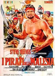 The Pirates of Malaysia is a 1964 swashbuckler directed by Umberto Lenzi and starring Steve Reeves as Sandokan the pirate. This film was a sequel to Reeve's 1963 film Sandokan the Great, also directed by Lenzi.[1] Malaysian rebel, Sandokan, with his group of renegades, tries to thwart a British general from forcing the good Sultan Hassim to resign in favour of the Imperial crown.[1]