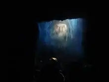 There are 630,000 gallons of water, 53 audio-animatronic animals and birds, and 75 audio-animatronic pirates and villagers in the ride, and it takes three days to empty and refill the "bayou" for renovations.[3] Across from the boarding area within the ride is the Blue Bayou Restaurant, made to look like the backyard dinner party of a southern plantation. The restaurant opened the same day as the ride, and is considered one of the original theme restaurants.[1]