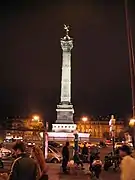 The Place de la Bastille (French pronunciation: [plas la bastij]) is a square in Paris where the Bastille prison once stood, until the storming of the Bastille and its subsequent physical destruction between 14 July 1789 and 14 July 1790 during the French Revolution. No vestige of the prison remains.