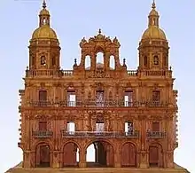 Construction of the plaza began in 1729 and was completed in 1755.[5] Felipe V ordered the construction of the plaza to be used for bullfighting and was designed by the Churriguera family in sandstone. It had been used for bullfighting up until the mid-19th century, one hundred years after being completed.[1][6] The construction took place in two phases: the first was between 1729 and 1735 and the second was between 1750 and 1755. The first phase was built under the direction of Alberto Churriguera while the second phase was built under the direction of Manuel de Larra Churriguera, his nephew.[7] Finally, Andrés Garcia de Quiñones built the City Hall.