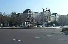 ![]() Plaza del Emperador Carlos V, with the Fuente de la Alcachofa in the foreground and the Ministry of Agriculture in the background | |
