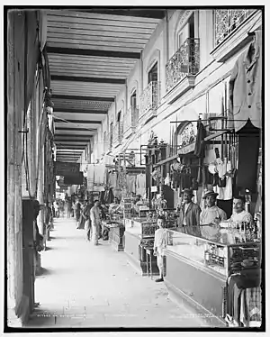 In the early morning of September 7, 1872 a fire destroyed the previous mercado de Tacón and it was necessary to install a provisional market in the Campo de Marte. The Public Works Advisory Board met on April 29, 1874 and the decision was made to replace the old market in the same place with the name Plaza de Tacón. The fruit stalls, the little shops, the clothing stores, the fur shops and a thousand other establishments that adorned the street gave each side of the building its particular character.[7] With some exceptions, the shopkeepers invented new ways to attract customers, otherwise nothing remarkable happened in the Plaza de Vapor during the working hours; as the night fell, one found the animation of the city, the electric lights, the silence on the interior courtyard and the darkness.[8]