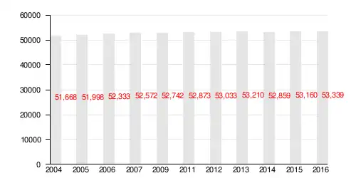 According to the Central Statistical Office data, the district's area is 9.54 square kilometres (3.68 square miles) and 52 859 people inhabit Podgórze Duchackie.[1]