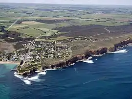 Port Campbell is now a popular tourist destination for visiting The Twelve Apostles, located 12 kilometres to the east of the town and the Port Campbell National Park,[6] as well as maintaining a small crayfishing community.