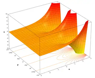 The exponential function exists for any complex number. Plotted above are the real part (left) and the imaginary part (right) of various values of the exponential function in the complex plane.