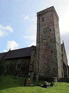 The parish church of St David is a Grade II listed building, and has many memorials to distinguished local people. It was described in 1833 as "an ancient and venerable structure, in the early style of English architecture, and in good repair",[2] but by 1872 was "in disrepair".[8] It was rebuilt in the late 19th century, but retains its late-mediaeval tower.[12]