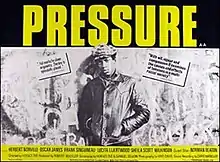Pressure is a 1976 British drama film directed by Horace Ové and starring Herbert Norville, Oscar James and Frank Singuineau. Co-written by Ové with Samuel Selvon,[2] it is hailed as the UK's first Black dramatic feature-length film,[3][4][5] and has been characterised as "a gritty and dynamic study of a generation in crisis".[6] Ové said in a 2005 interview: "What Pressure tried to do was to portray the experience of the Windrush generation, the kids who came with them and the kids born here."[7]