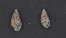 Two shells of Pseudamycla dermestoidea (museum specimens at Naturalis Biodiversity Center)