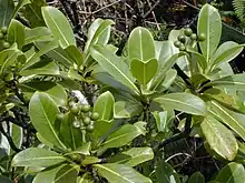Psychotria mariniana, the forest wild coffee[2] or kōpiko, is a tree endemic to Hawaiʻi. The plant belongs to the Rubiaceae (coffee) family, subfamily Rubioidae. It is a tree of varying size with a dark bark, shiny leaves, and orange oval fruit.