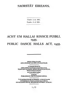 - ↑ "Legislation directory: Public Dance Halls Act, 1935". Irish Statute Book. Retrieved 21 December 2013.