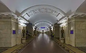 Pushkinskaya (Russian: Пу́шкинская) is a station of the Saint Petersburg Metro. It first opened on 30 April 1956, under the original name of "Vitebskiy vokzal", referring to the connecting Vitebsky railway station.