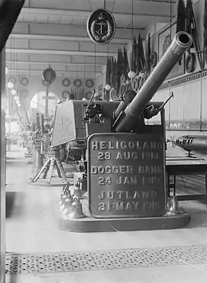 - ↑ "GUN WHICH FIRED THE FIRST SHOT AT SEA IN WW1 IS INSTALLED FOR NEW £4.5M REMEMBRANCE GALLERY". www.nmrn.org.uk. National Museum of the Royal Navy. 2014. Retrieved 2 January 2022.