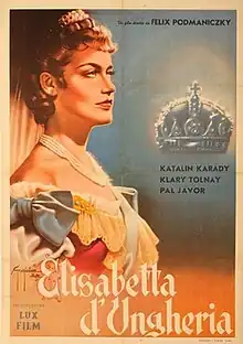 Queen Elizabeth (Hungarian: Erzsébet királyné) is a 1940 Hungarian historical drama film directed by Félix Podmaniczky and starring Katalin Karády, Klári Tolnay and Pál Jávor.[1] [2] [3] It was shot at the Hunnia Studios in Budapest. The film's sets were designed by the art directors Klára B. Kokas and Márton Vincze.