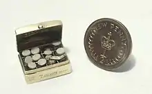 A medicine chest from the dollhouse, shown next to a 17-millimetre (0.67 in) halfpenny