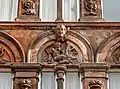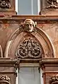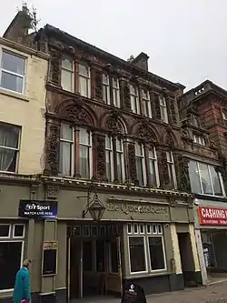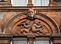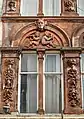 The front of the hotel originally included arched windows with eight carved heads, with four heads located over the ground floor windows and four over the first floor. The front also features cherubs, a satyr playing the pan flutes, floral designs, eagles, and keystones carved as human heads.[2] The ground floor carvings have since been removed and the front of the building modernised.