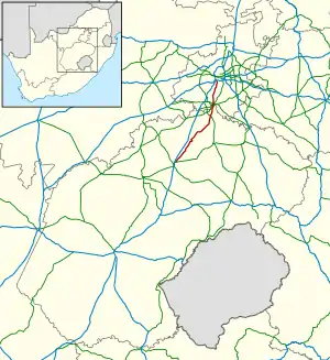 The R82 is a provincial route in South Africa that connects Johannesburg with Kroonstad via Vereeniging and Sasolburg. It starts just south of the M1 Johannesburg Municipal Highway's interchange with the N12 Southern Bypass (Uncle Charlie's Interchange), going south, meeting the R59, R54, R42 & R28 routes at Vereeniging before crossing the Vaal River into the Free State & proceeding to Kroonstad. It is an alternative, but longer route to the N1 National Route between Johannesburg & Kroonstad.[1]