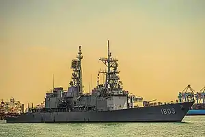 ROCS Tso Ying (DDG-1803) (Chinese: 左營號; Wade–Giles: Tso3 Ying2 Hao2) is a Kee Lung-class guided-missile destroyer currently in active service of the Republic of China Navy (ROCN; Taiwan). It was formally commissioned at Suao Naval Base in northeastern Taiwan on 3 November 2006 along with sister ship ROCS Ma Kong (DDG-1805). Tso Ying is named after the largest naval base in Taiwan, the Tso Ying Naval Base in Tsoying District, Kaohsiung City in southern Taiwan. The Tso Ying Naval Base is also the location of the Taiwanese naval academy and fleet headquarters.