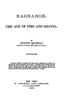 Ragnarok: The Age of Fire and Gravel is a book by Minnesota politician Ignatius L. Donnelly published first in 1883. It is a companion to the more well-known work Atlantis: The Antediluvian World.
