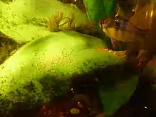 The larvae are not free-swimming for five days, after which they are escorted by the male or the female in a dense school for foraging.[5]