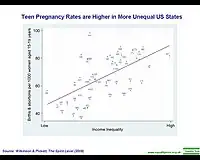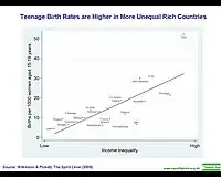 Teen pregnancy rates are higher in more unequal countries and in more unequal US states.