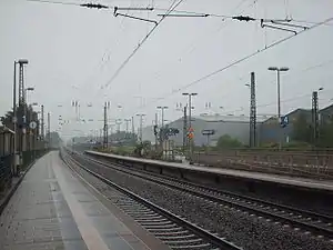 Recklinghausen Süd station is located in the city of Recklinghausen in the German state of North Rhine-Westphalia. It is on the Wanne-Eickel–Hamburg line. The line and station opened between 1880 and 1886, originally as Bruch station. it was renamed Recklinghausen Süd between 1897 and 1905.[4] It is classified by Deutsche Bahn as a category 5 station.[1]