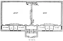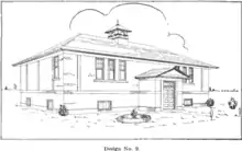 The school was built using stock plans available free of charge from the state superintendent of public instruction to any school district desiring them.[2] These plans were one of a set of ten first unveiled in the 1915-1916 Annual Report of the Superintendent of Public Instruction of the State of Michigan.[5] These stock plans were created in response to legislation requiring the Superintendent's office to approve all school plans.[5] Not only were the plans "calculated to meet the requirements of most districts, both as to cost of the building and the peculiarities of the local site," but they were supposed to exemplify the "modern rural school building," one that was "planned to observe both hygienic needs and the conveniences of schoolroom administration."[5]