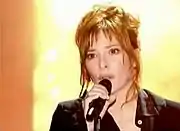 For the first time since "C'est une belle journée" in May 2002, Farmer accepted to perform a song in a television show, which was very rare. She decided to sing "Redonne-moi" on Symphonic Show on France 2,[21][22] broadcast on 12 November 2005, although Farmer recorded her performance on 5 October without audience.[23] Already in October, French television host Daniela Lumbroso announced in the media that Mylène Farmer would be present at the show.[24] She also explained that for this occasion, the set was smoky and decorated with 200 candles, and that the recording of the performance lasted about 30 minutes.[25] Farmer wore black trousers and a black blouse with a big crucifix as pendant.[26] The song was performed in lip-sync and accompanied with a philharmonic orchestra named 'The Night of the Proms', composed of 140 musicians and choristers, and Yvan Cassar on piano. According to author Erwan Chuberre, this performance, though moving, was far from being unanimously appreciated.[2]