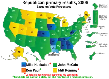 - ↑ "2008 Republican Delegates". RealClearPolitics. Retrieved 2008-02-06.