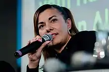 Şahin first became known to a broad German public in late 2007 through an appearance on Menschen bei Maischberger.[19] As Lady Bitch Ray, Şahin was a guest on an edition of the Austrian late-night show Willkommen Österreich, which aired on January 10, 2008. There, she poured a glass of water over Ulf Poschardt, who had also been invited and had previously criticized her. Poschardt then left the show prematurely.[20] At the time of the elections in Hessen, Şahin wrote an article for the Spiegel Online site on the controversy over juvenile delinquency that had been initiated by Prime Minister Roland Koch in January 2008. However, much of the text did not deal with youth violence, but with the controversy surrounding her person and dubbed Şahin's critics "garden Nazis."[21]
