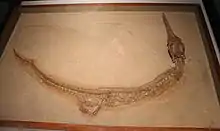 Rhacheosaurus is an extinct genus of marine crocodyliform belonging to the family Metriorhynchidae. The genus was established by Christian Erich Hermann von Meyer in 1831 for skeletal remains from the Tithonian (Late Jurassic) of Germany.[1] It was a relatively small reptile, measuring between 1.39 and 1.57 m (4.6 and 5.2 ft) long.[2]