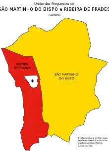 Ribeira de Frades is a former civil parish in the municipality of Coimbra, Portugal. The population in 2011 was 1,902, in an area of 310 km2.[1] On 28 January 2013 it merged with São Martinho do Bispo to form São Martinho do Bispo e Ribeira de Frades.[2] It was one of the only freguesias with enclaves and exclaves. After the merging its enclave was maintained.