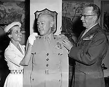 Richard P. Ross Jr. being promoted to the rank of Brigadier General during his retirement ceremony by his wife Catherine and Commandant Randolph M. Pate.