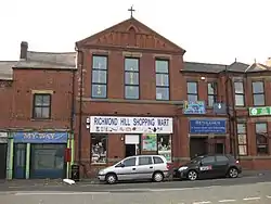 Richmond Hill developed as a residential and industrial area during the late-18th and 19th centuries. The housing in the area was originally small cottages, but during the industrial revolution many streets of back-to-back terrace houses were built to house the influx of workers. Upper Accommodation Road is the historic heart of the area with some of the more historic buildings on the west side and newer ones on the east.[1] A Leeds Industrial Co-operative building from 1902 is on a corner with East Park Road. In the 20th century much of the housing stock was updated with schemes such as the Saxton Gardens. The Saxton Gardens estate has since been redeveloped by Urban Splash to create 410 homes, allotments and the largest communal garden in the city.[2]