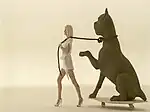 Alison Goldfrapp pulling a large plastic dog in the music video.